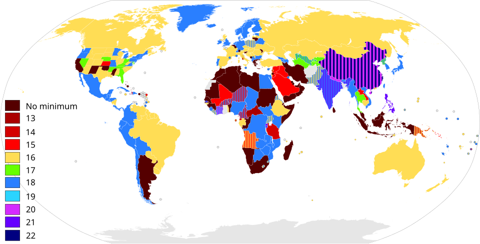 However, despite these facts, in many countries around the world, as seen in the figure below, marriage is allowed with judicial consent even for those below 18 years old.